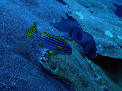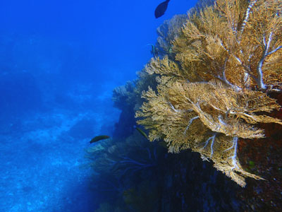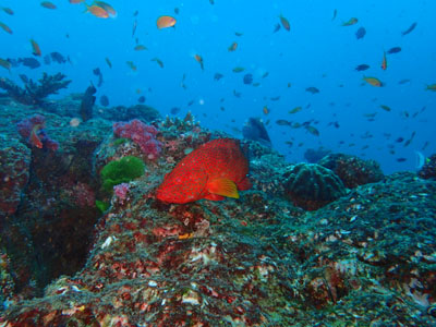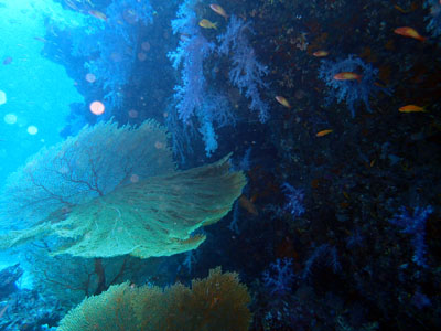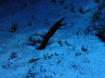 実はマンタの前にウエストリッジ手前の水底で、お二人はトラフザメを見ていたんですね。