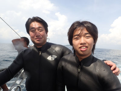 お父さんはダイブマスターというプロの資格をお持ちで、息子さんもレスキューまで持っています。お二人とも150本ほど潜っているそうですが、親子で同じ趣味を持てるのはいいですね。