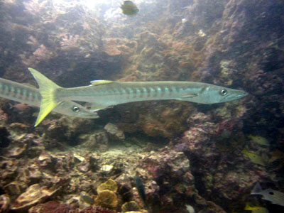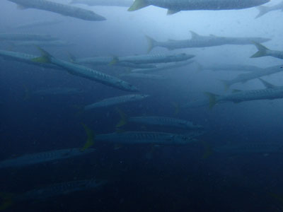 キングクルーザーの中、キンセンフエダイとタイワンカマスの群れがぐしゃぐしゃしています。