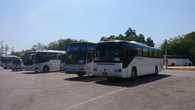 日曜日に嫁さんと行ったターイ寺院も、写真の様な大きな観光バスで、中国人やロシア人がたくさん訪れます。