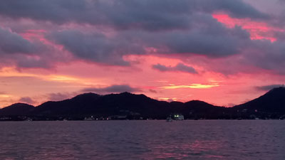 これはプーケットの東側チャロン港付近の写真ですが、プーケットの西側のパトンやカロン等の夕日は海に沈むのが見えて、それはまたキレイです。