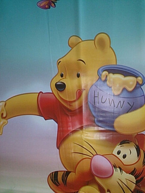 ディズニーのキャラクターが入ったテーブルクロスなのですが、プーさんが持っている壺に書かれた「