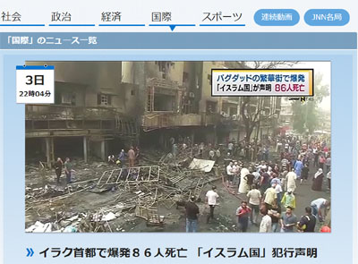 今日はイラク首都で爆発があり、86人が死亡したと報じられました。