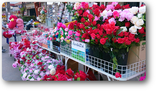 昼間に通りかかった時は、欧米人のおじさんがバラの花束を買っていました。
