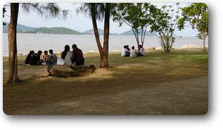 タイ人ばかりでなく、現地在住の欧米人もいたりして、ござを敷いて食事をしながらおしゃべりを楽しんでいました。