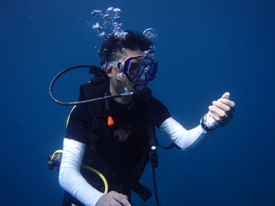 体験ダイバーのお二人は、前回バンコクに旅行された際、パタヤの海で体験ダイビングをされたそうです。