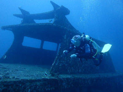 カマスの群れや、沈船を見て楽しんでもらいました。