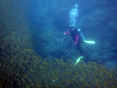 あいかわらず、木造の沈船は魚がいっぱい