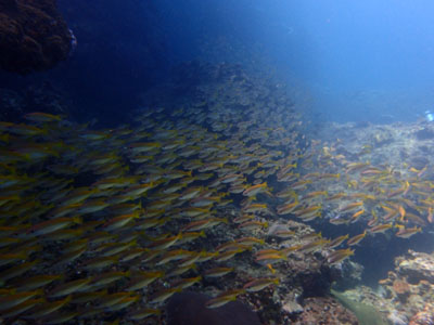 キンセンフエダイの群れの中にアタック!