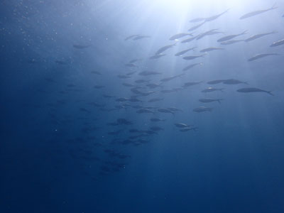 ぼんやりでしたが、魚が次々に群れをなして通り過ぎてゆきました