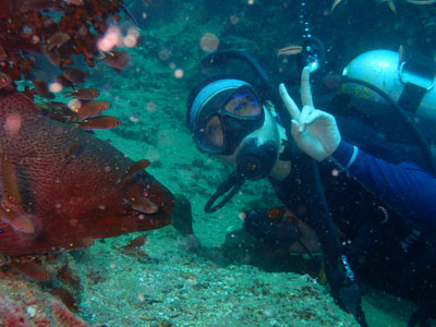 こっちも大きなドクウツボを見た途端、さっと後ろに回ってポーズ