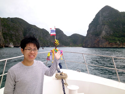 前回に「次はピピ島へ」というお約束だったので、天気は曇り空、波はあって透明度は今一つでしたが、ピピ島へご案内しました。