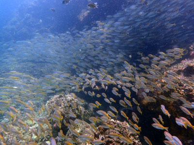 まるで雲のようなキンセンフエダイの群れ