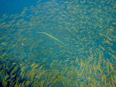 今日は体験ダイビングが初めてだと言うF様にはキンセンフエダイの群れと光のカーテンのピピ島2ダイブを楽しんでもらいました。