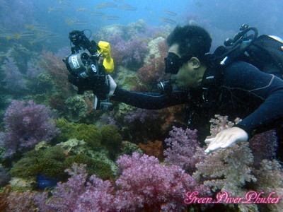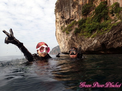 今回はオープンウォーター取り立てのお二人がいましたが、ピピ島では目の前を泳ぐブラックチップシャークを見てもらったり、流れの中も泳いでもらったり、バラクーダや華やかなソフトコーラルも観て頂きました。
