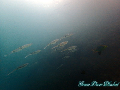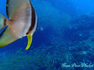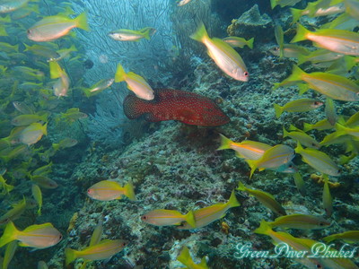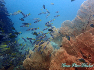 ラチャノイ島と違って透明度はもう一つですが、それでも圧倒的な魚影にソフトコーラルの美しさを楽しんで頂きました。