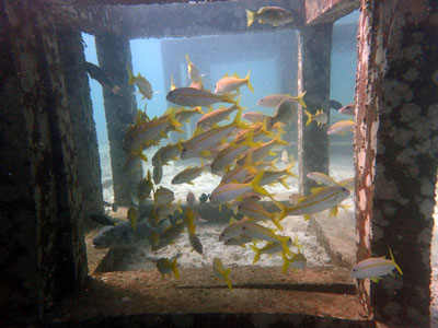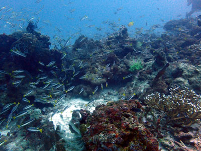 ホソフエダイの群れが洗濯機のようにぐるぐる回っていました