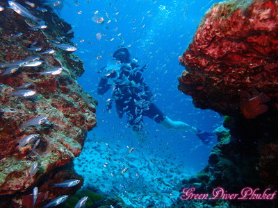実は明日は友人2人と一緒に潜るのですが、まだお二人は講習中だったので、一足先にファンダイビングを楽しんで頂きました。