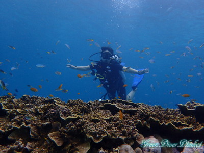 お二人がファンダイバーで、お一人が体験ダイビングでご参加です。