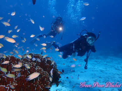 こちらはラチャヤイ島。魚に囲まれている感じです