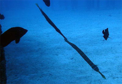 トランペットフィッシュのキッス!ではなくておそらくオス同士のケンカだと思います