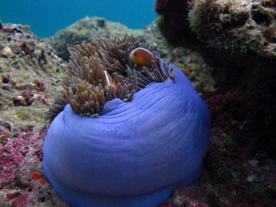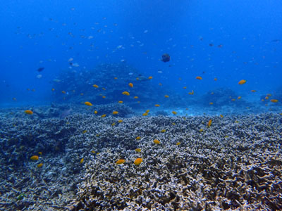 サンゴの上に群れるスズメダイもとてもきれいです。