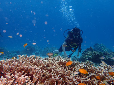 体験ダイバーのH様も最初は緊張していましたが、すこしずつそれも解けてきて1本目もこんな感じ