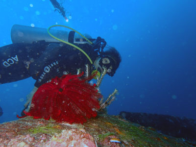 マンツーマンで潜ったラチャヤイ島、沈船の上には3匹並んでいました