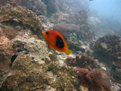 天気:晴れ、波:0.6m、流れ:ほとんど無し、水温:30℃、透視度:12m程度