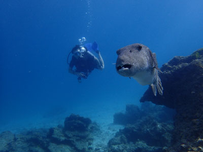 天気:晴れ、波:0.3m、流れ:やや弱く、水温:29℃、透視度:18m程度