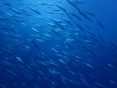 ラチャヤイ島ではいつものようにタイワンカマスの大群が。