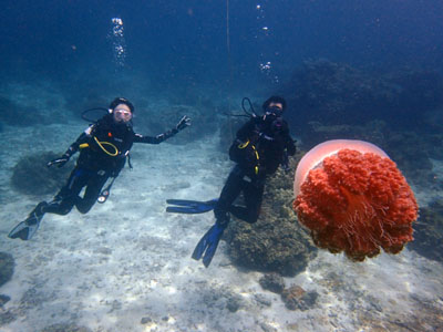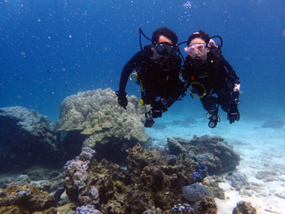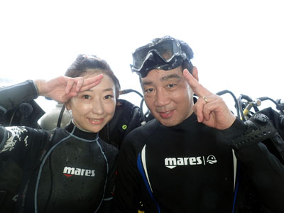 旦那さんは150程度潜っているのです、奥さまはCカードを取って間もないビギナー。
