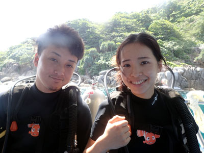 彼の方はCカードを取って10本程度潜ったダイバー、彼女は体験ダイビング2回目です。