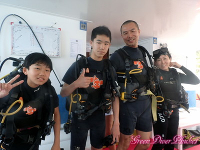 今日はお一人が以前ご利用いただいたリピーター様。お連れ様と一緒に、プーケットにまた潜りに来ていただきました。